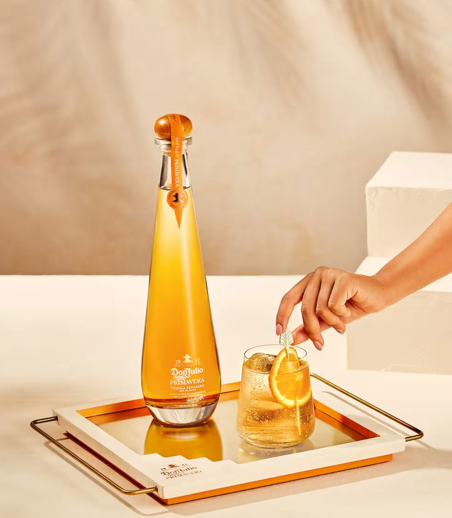 In 1942, Don Julio González decided to establish his roots in Atotonilco El Alto, Mexico where he acquired his Distillery “La Primavera”. Tequila Don Julio Primavera honors our late founder's legacy as he believed reposado tequila was tequila at its finest. This deliciously smooth expression takes Tequila Don Julio's traditional Reposado and finishes it in a highly coveted European cask, which previously held wine infused with macerated orange peel, for a silky, sophisticated, light citrus taste. “Primavera” is best enjoyed on the rocks with an orange wheel or in our signature drink, the Primavera Sunset.